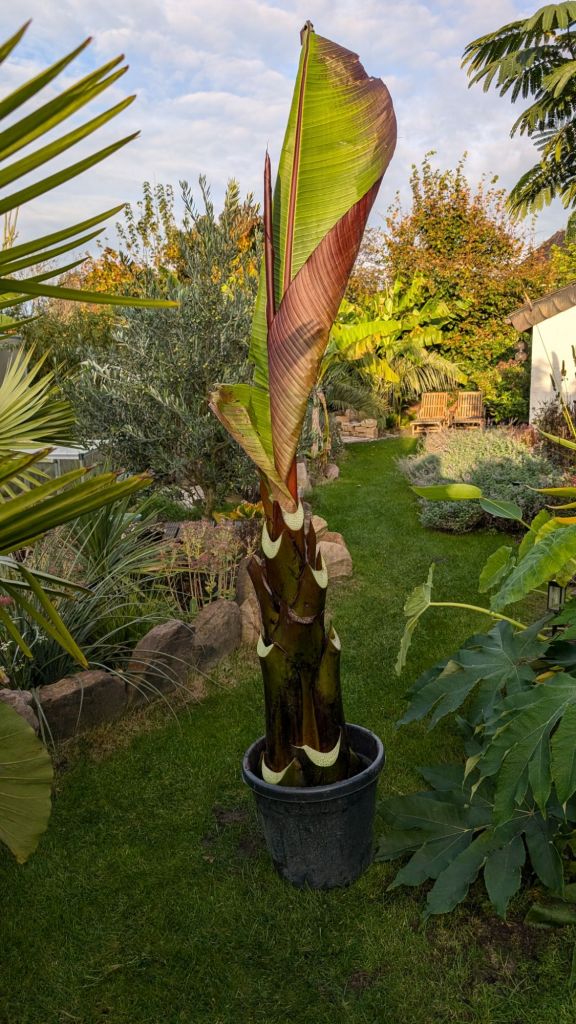 Die rote Zierbanane ist eine der Pflanzen, die deinen Garten oder Balkon sofort verwandelt. Ihre Größe, ihre Farben und ihr tropisches Auftreten sorgen dafür, dass sie zum Mittelpunkt wird – egal, wo du sie platzierst.