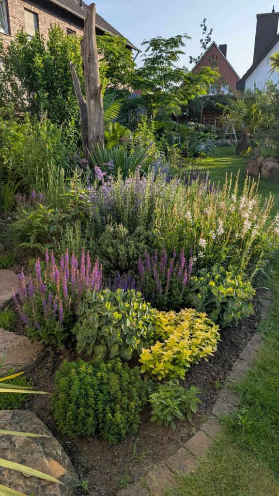 Hier musste zum Beispiel ein alter Weg weichen, den eh niemand genutzt hatte und das Staudenbeet wurde von einem halben Meter Breite auf fast 4m verbreitert.