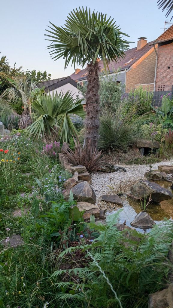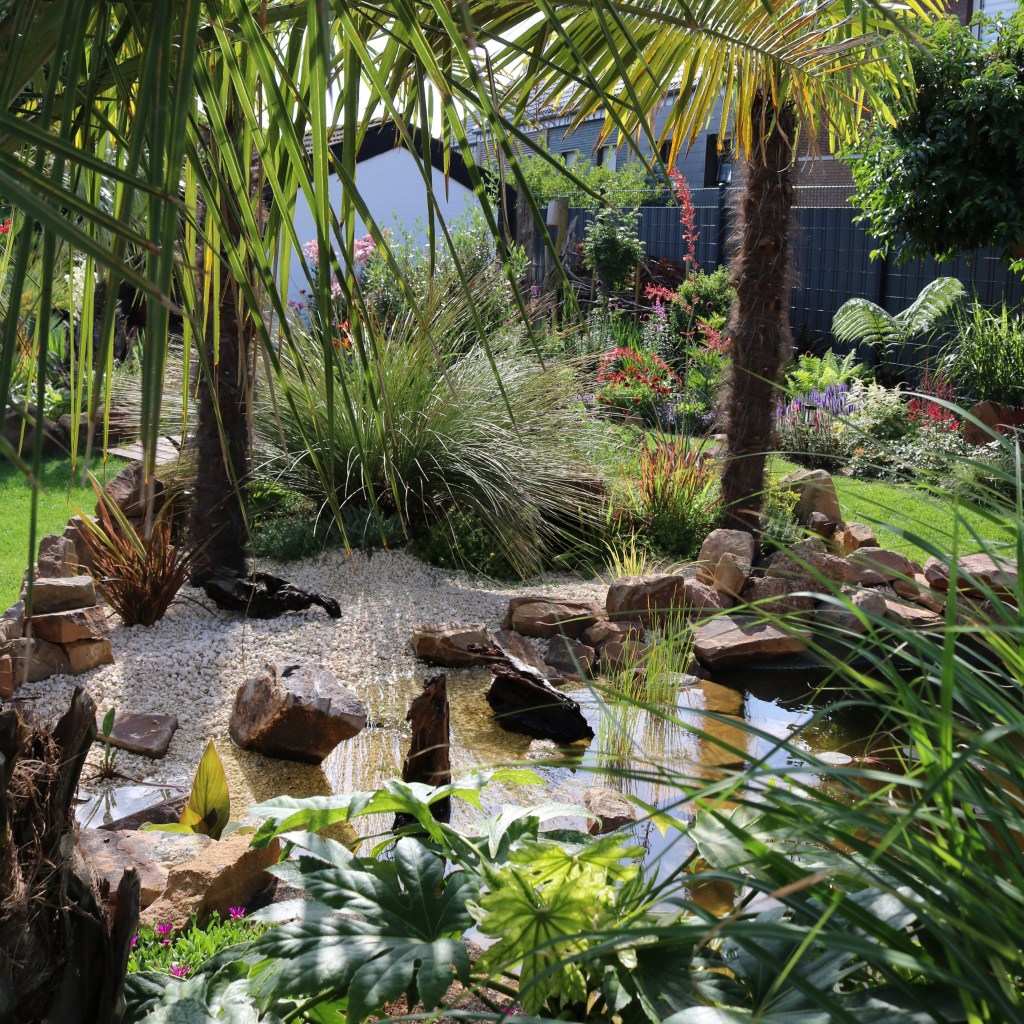Ein Garten lebt von Wasser. Es bringt Ruhe, Bewegung und zieht Tiere magisch an. Uns war wichtig, einen Ort zu schaffen, der nicht nur schön aussieht, sondern auch funktional ist – für Insekten, Vögel und einige wenige Fische.